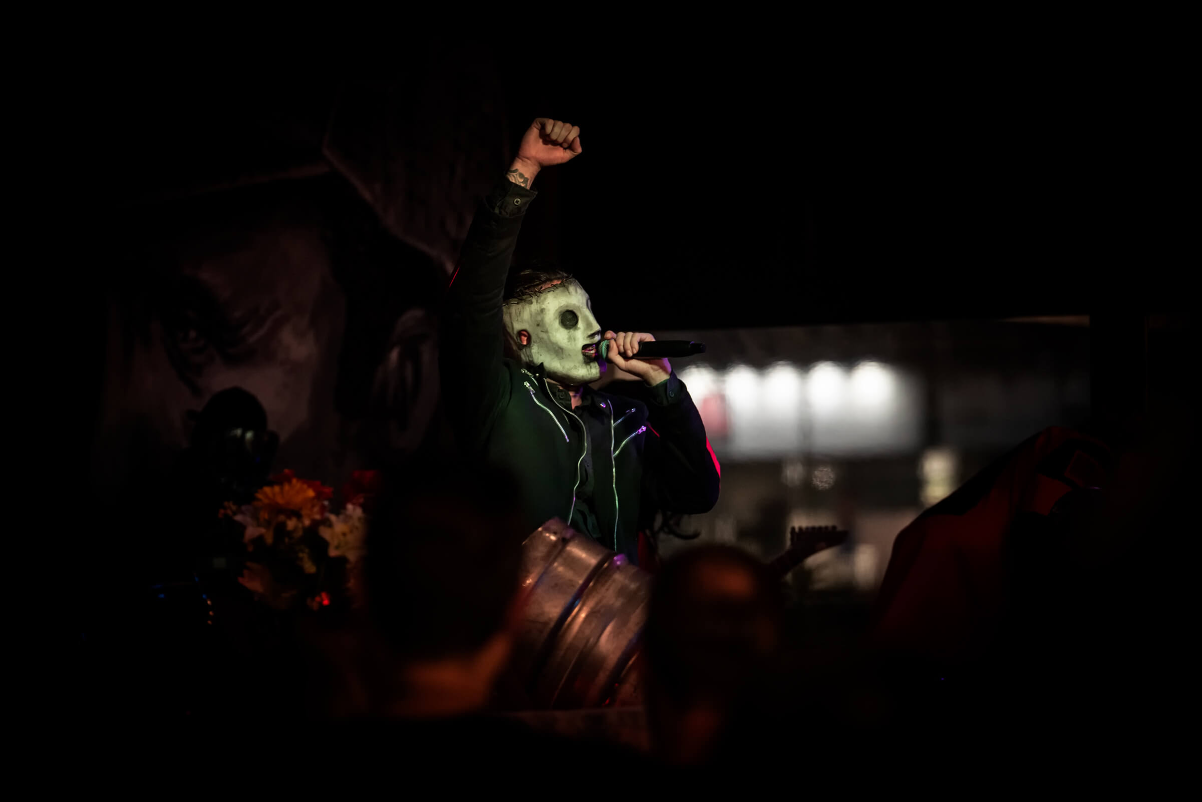 Con un po’ di ritardo salgono sul palco alle 22:30 ma l’attesa viene ripagata. Iniziano con Intro – Unsainted, la gente si raduna e la intona con loro. Si continua con (Sic), Eyeless, Disasterpiece. Sul palco tantissima energia, le movenze, i loro modi di fare, i movimenti…Sembra di vedere il gruppo originale…non ho mai avuto l’occasione di vederli dal vivo ma questo è quello che mi è stato detto da chi gli Slipknot li ha visti in concerto e rivede negli Evilsonic la capacità di mettersi in scena, i costumi e gli atteggiamenti del gruppo originale.