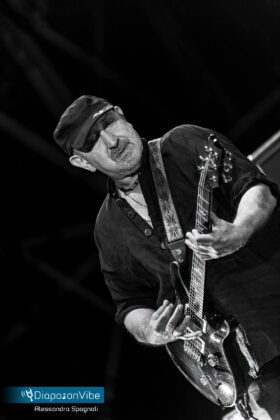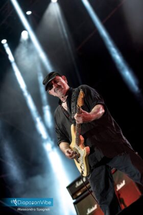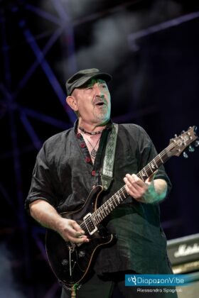 Quando salgono sul palco loro lo spettacolo è assicurato. I Litfiba, ancora insieme per il loro Ultimo Girone hanno incendiato il palco del Rock in Roma all’Ippodromo delle Capannelle. Lunedì 18 luglio, poco dopo il tramonto, Piero Pelù e Ghigo hanno festeggiato i 40 anni, più due, di carriera all’insegna del rock. Accompagnati dalla loro attuale band, formata da Luca Martelli alla batteria, Fabrizio Simoncioni alle tastiere e Dado Neri al basso, hanno fatto riascoltare tutti i loro più grandi successi, che sono tantissimi, da Apapaia a Instanbul, con dedica ai curdi, da Proibito a Fata Morgana, fino a Cangaceiro, per una chiusura con il botto.