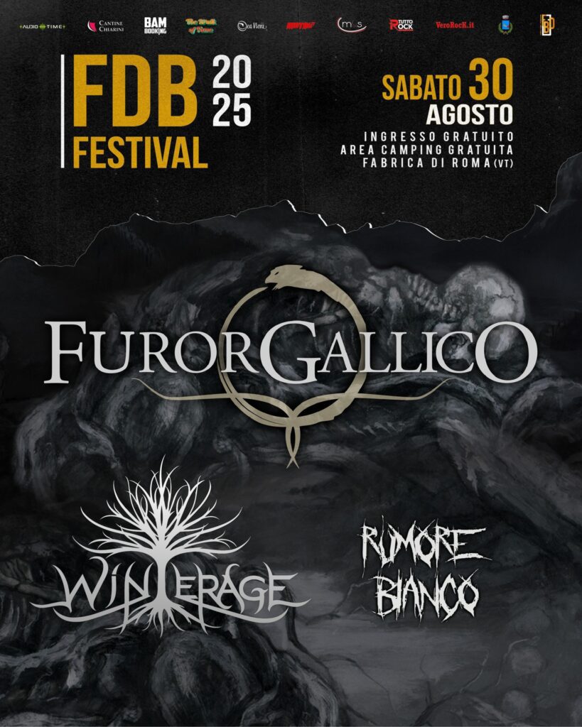 Sabato 30 agosto, invece, il palco del FdB Festival verrà calcato dai Furor Gallico, con i Winterage e i Rumore Bianco in apertura. Il gruppo che farà da headliner è considerato uno dei maggiori esponenti del Folk/Death Metal italiano, con moltissimi ascolti sulle maggiori piattaforme.