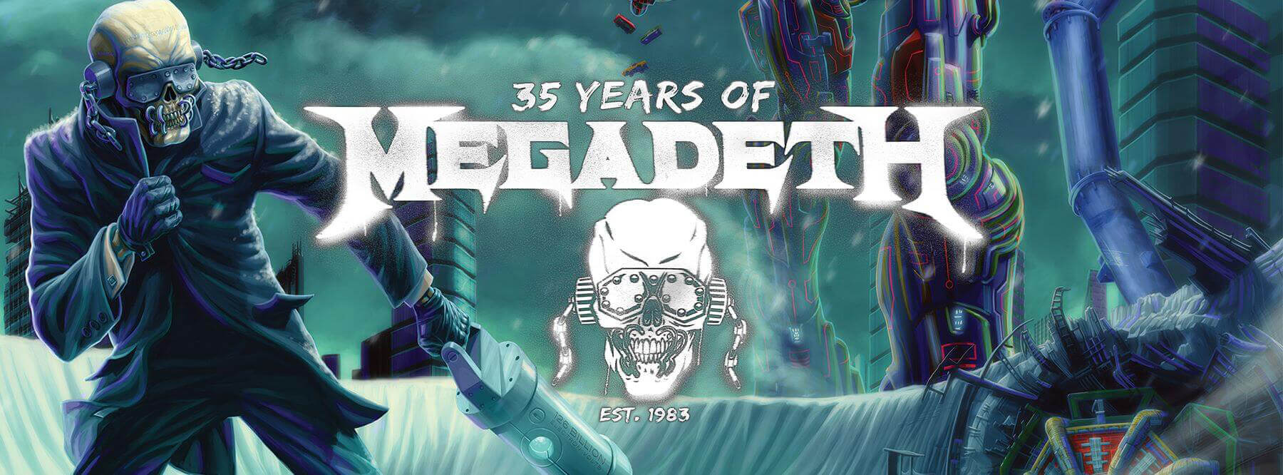 Il gruppo americano originario di Los Angeles, California si è formato nel 1983 grazie al front-man Dave Mustaine. Personaggio con un carattere non facile e una personalità molto forte. Dave ha suonato nella primissima formazione dei Metallica, ma la collaborazione durò solo due anni. Fu infatti mandato via dal gruppo per problemi legati a droga e alcool e rimpiazzato dal ben noto Kirk Hammett. Non una facile separazione, ma non si diede per vinto, disintossicato ritornò e alla grande dando vita appunto ai Megadeth, il cui nome è una distorsione di Megadeath, una triste unità di misura che identifica le vittime causate da una guerra nucleare e che equivale a 1 milione di persone.